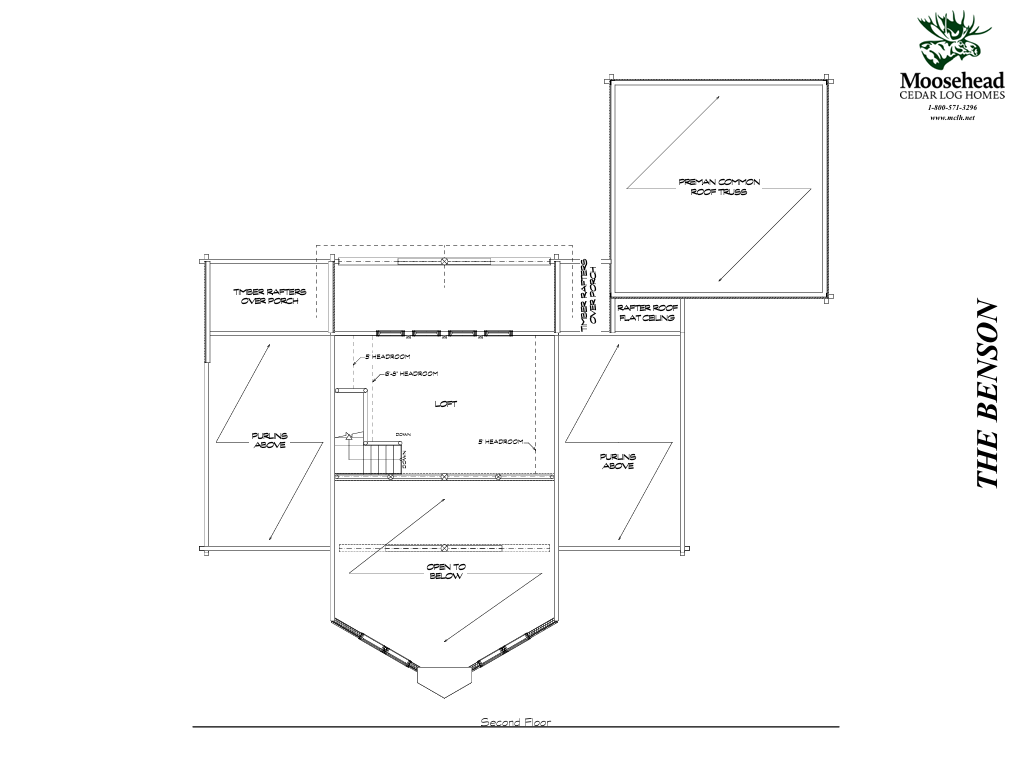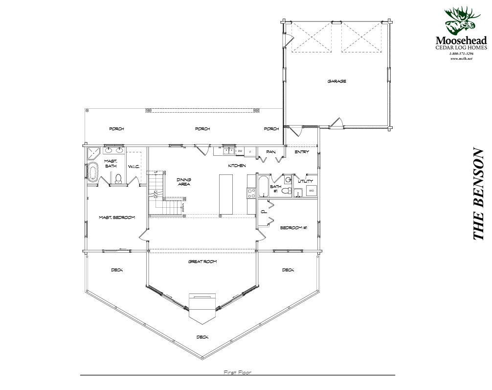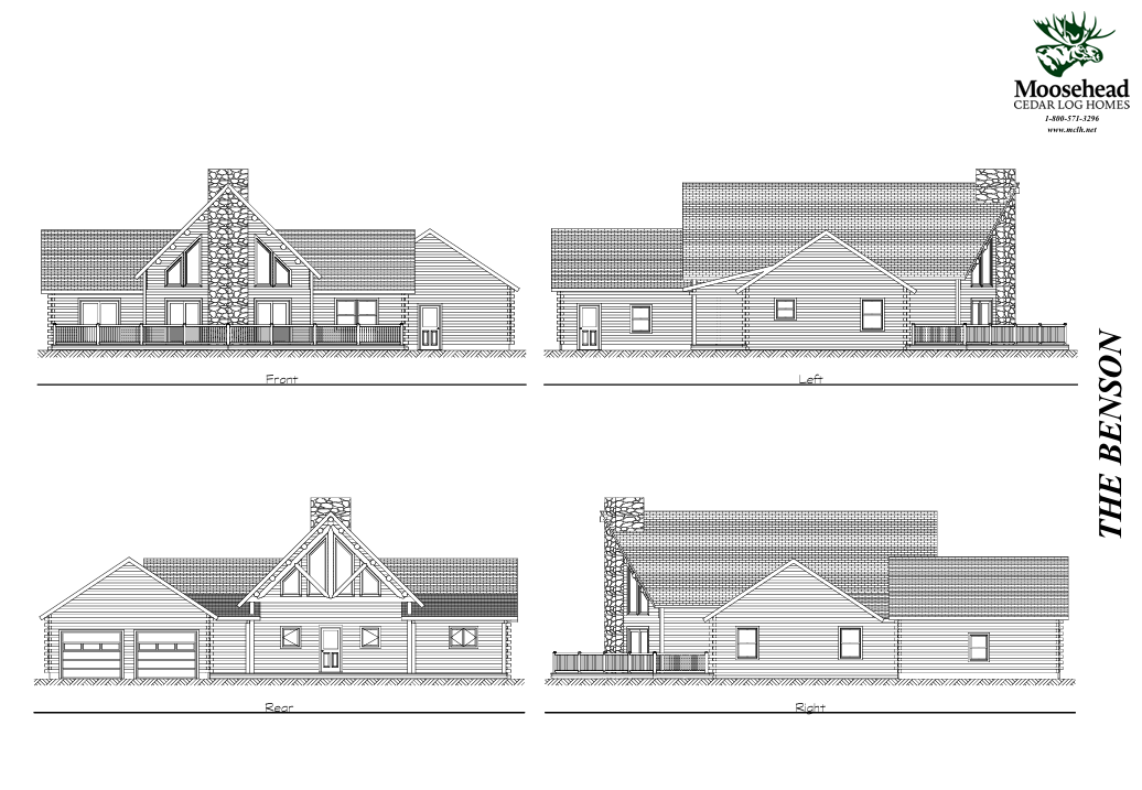 The Benson offers classic log home style with a smart, open layout. Entry from the attached two-car garage leads directly into operations center of the home: a laundry space, pantry, and bathroom before opening into the kitchen and dining room. The vaulted great room commands first floor, opening onto multiple decks for easy outdoor living. The first-floor master suite includes a walk-in closet and full bath, while the upstairs loft offers a quiet retreat.