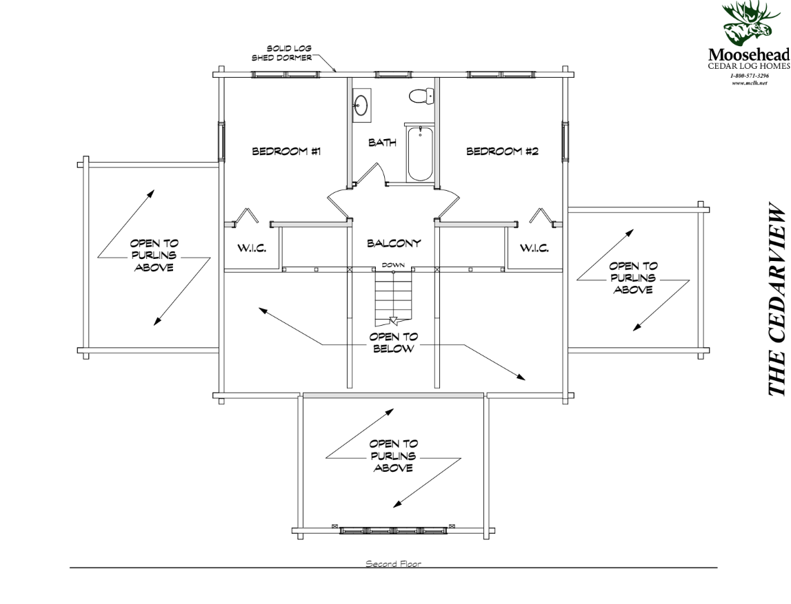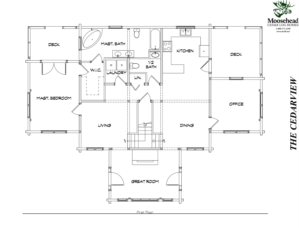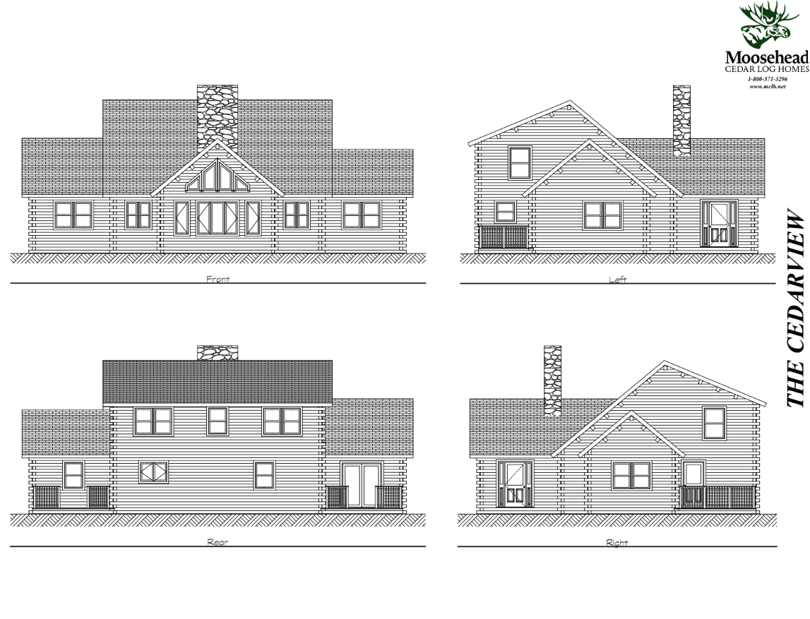 From the outside, the Cedarview is simply a charming log cabin. But once you step through the doors, you’ll find delights around every corner. First, the split staircase elevates the vaulted great room to a level of unexpected elegance, grounded by the central fireplace. Continue left to the living room, with the laundry and half bath conveniently located just beyond the back hall. Off the living room is the master suite, complete with a huge walk-in closet and private deck. Taking a right from the entrance leads to an office, spacious dining room and kitchen, with access to another first floor deck. Upstairs the balcony leads to two bedrooms and another full bathroom. The Cedarview offers luxury living with a rustic charm.