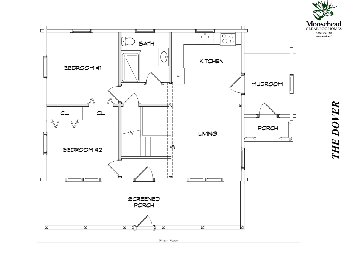 The Dover is designed for making the most of any season. From the covered side porch entry, a large mudroom with plenty of storage opens up to the vaulted, open-concept kitchen and living room. Both bedrooms are on the first floor, along with the shared full bathroom. A screened-in covered porch runs across the entire front of the home. A large second story loft offers flexible space for guests, a home office, or hobby area.