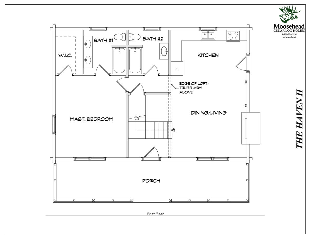 With its clean design and classic log cabin style, the Haven II retains all the simple charm of the original Haven with a little more room to spare. From the covered porch spanning the front side, step in to the dedicated entryway and on to the open concept living room and kitchen, all vaulted to the ceiling. Past the kitchen is a full guest bathroom and master suite, complete with a full bath of its own and a walk-in closet. The spacious second floor loft is ready for more guests, more storage, or both. Enjoy the simple life with plenty of room to relax in the Haven II.