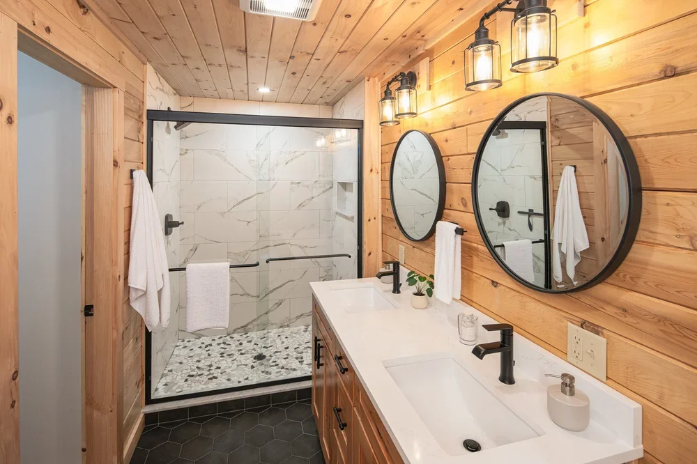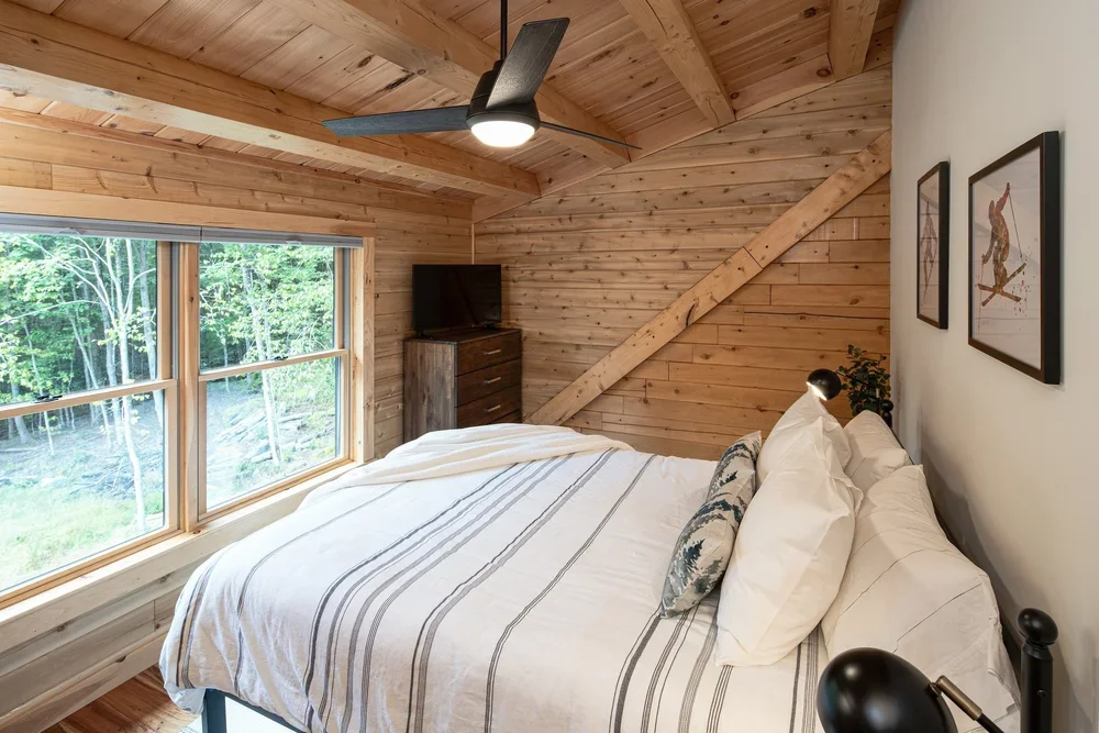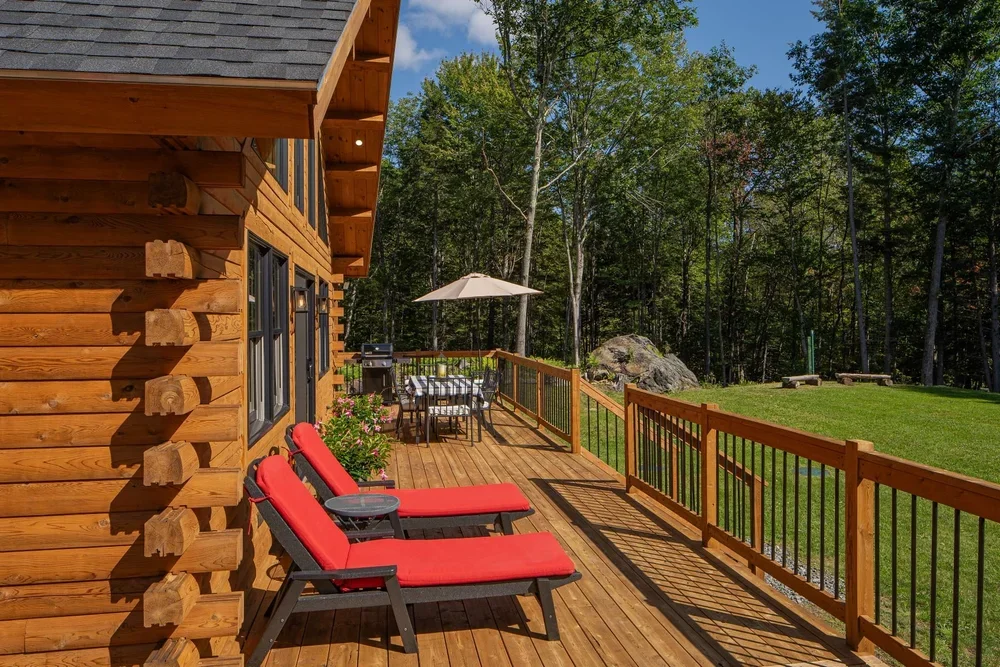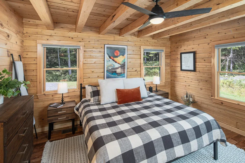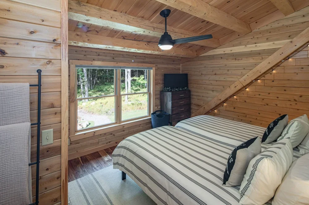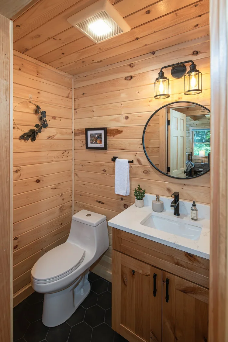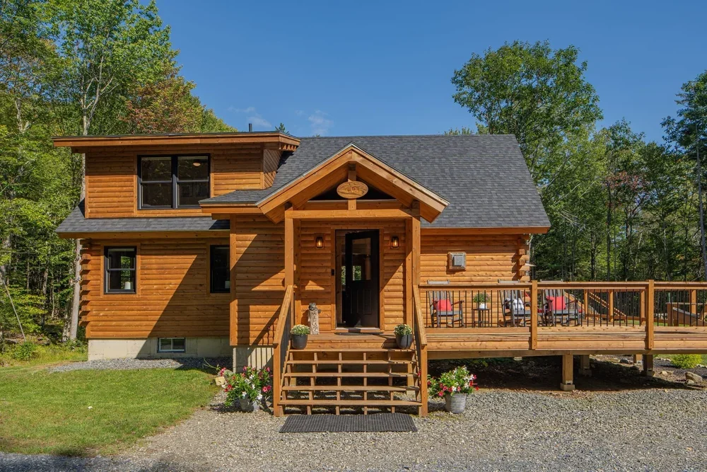 The eye-catching design of the Haystack combines classic log cabin aesthetics with Craftsman-inspired architecture. The result is a stunning home both inside and out. Enter into the spacious mudroom, with plenty of natural light from two large windows and vaulted ceilings. The open floor plan lies ahead, with two stories of windows on the right, including sliding glass doors to the deck. The stairs on the left envelope the space, and the L-shaped kitchen is straight ahead with a dining area opening to the covered porch. A powder room and pantry are tucked just outside the kitchen. The master suite encompasses the left third of the main floor, with a large walk-in closet and spacious full bathroom. The loft above incorporates an angled rail for a view of the great room below. Also upstairs are two more bedrooms and a second full bathroom. The Haystack model offers a practical layout in a stunning package.