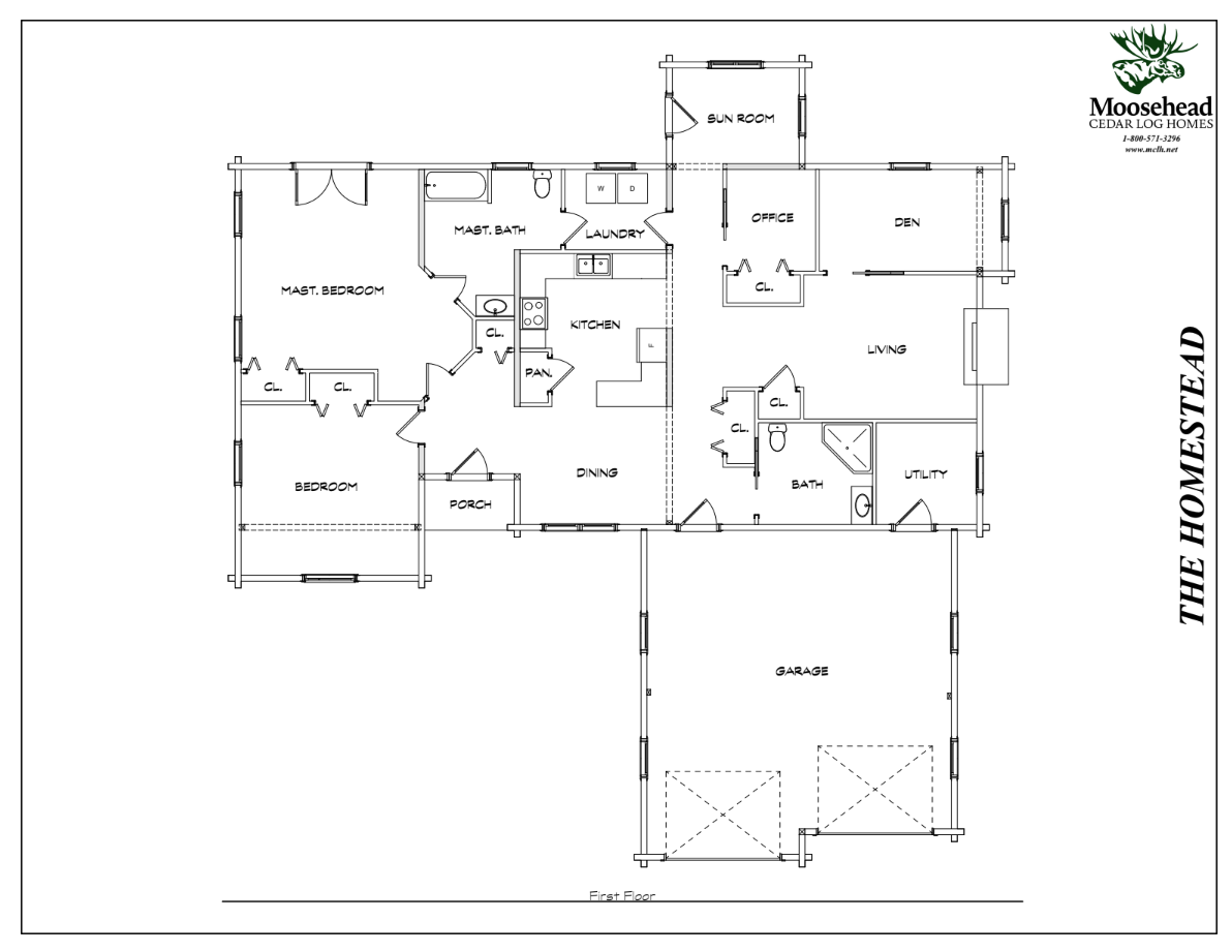 The Homestead is an inviting and practical design, thoughtfully laid out to maximize space and comfort. From the covered porch, enter the spacious foyer with the dining room to the right and both bedrooms angled to the left. The master suite wraps around the back to include French doors to the backyard, a full bathroom, and its own entrance to the laundry room. Enter from the attached two-car garage to find a bathroom with stand-up shower on the right, and the dining room and kitchen to the left. The sunroom extends off the back, with the home office, den, and great room wrapping around the right side. The Homestead is the perfect blend of practicality and charm.