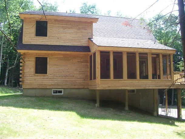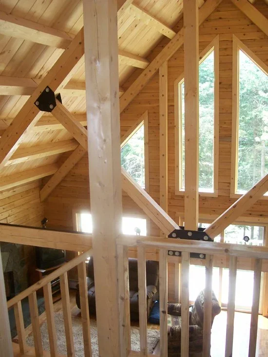 Similar to the Lakeside model, the Lakewood features a classic flying gable over a front deck, giving the feeling of a rustic waterfront retreat no matter where you build. Step into the main living area from the front deck- a vaulted, open space room with an L-shaped kitchen on the left and floor to ceiling windows on the front. Past the kitchen is a full bathroom shared by two bedrooms. The upstairs loft is a large, flexible open space with its own full bathroom- perfect for guests or as a private master suite. The Lakewood is everything you need in a classic log cabin.