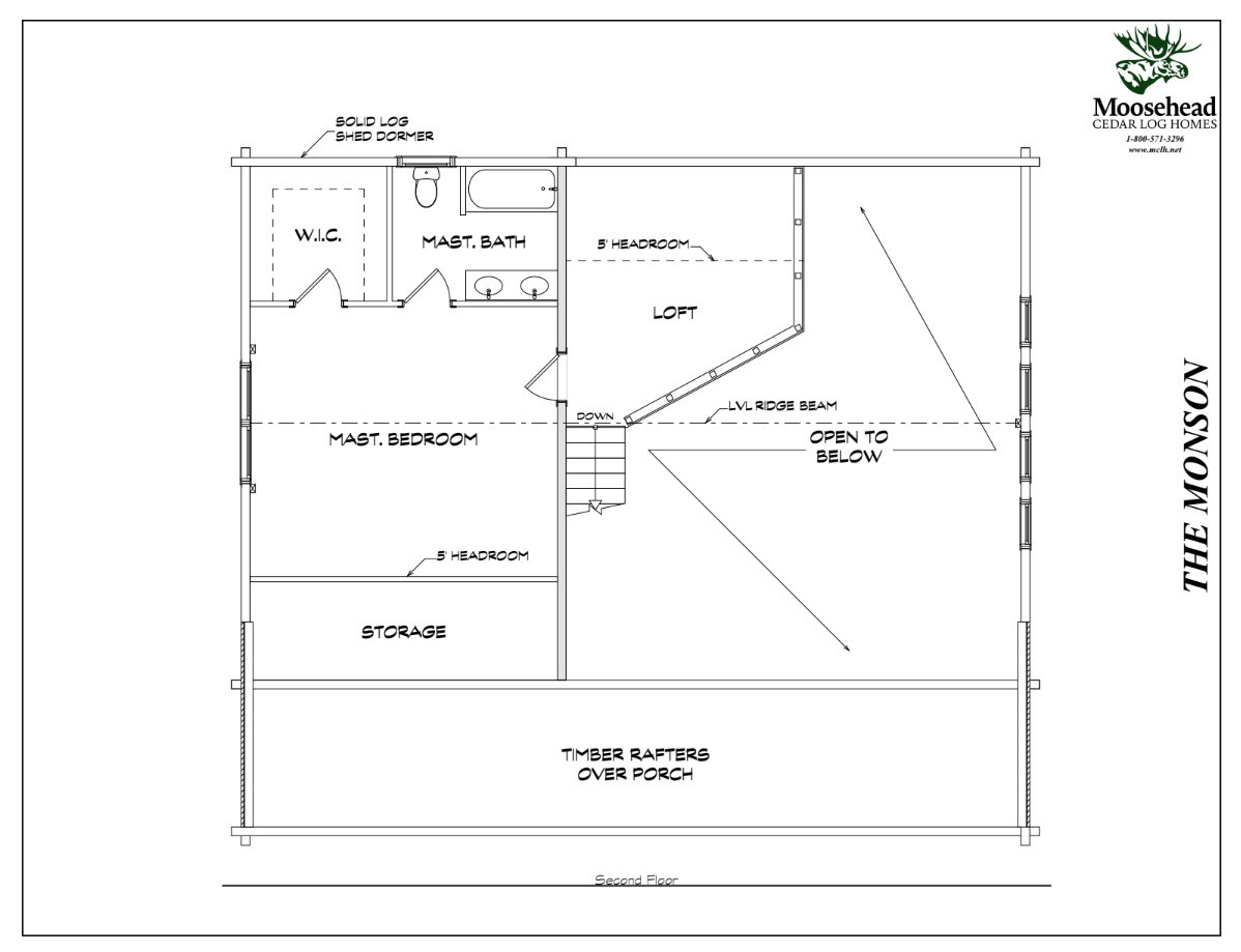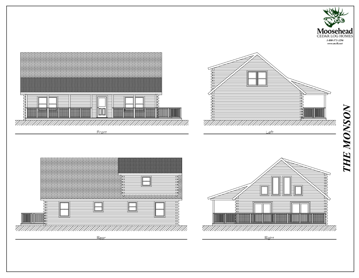 The Monson offers all the classic log cabin features you love, with charming details at every corner. The wraparound front porch accesses the vaulted great room, complete with floor to ceiling windows to maximize views. Past the kitchen and dining room are two downstairs bedrooms with generous closets, and a shared full bath. The angled upstairs loft welcomes you to the master suite, complete with a large walk-in closet and full bathroom. Log cabin life is ready for you with the Monson.