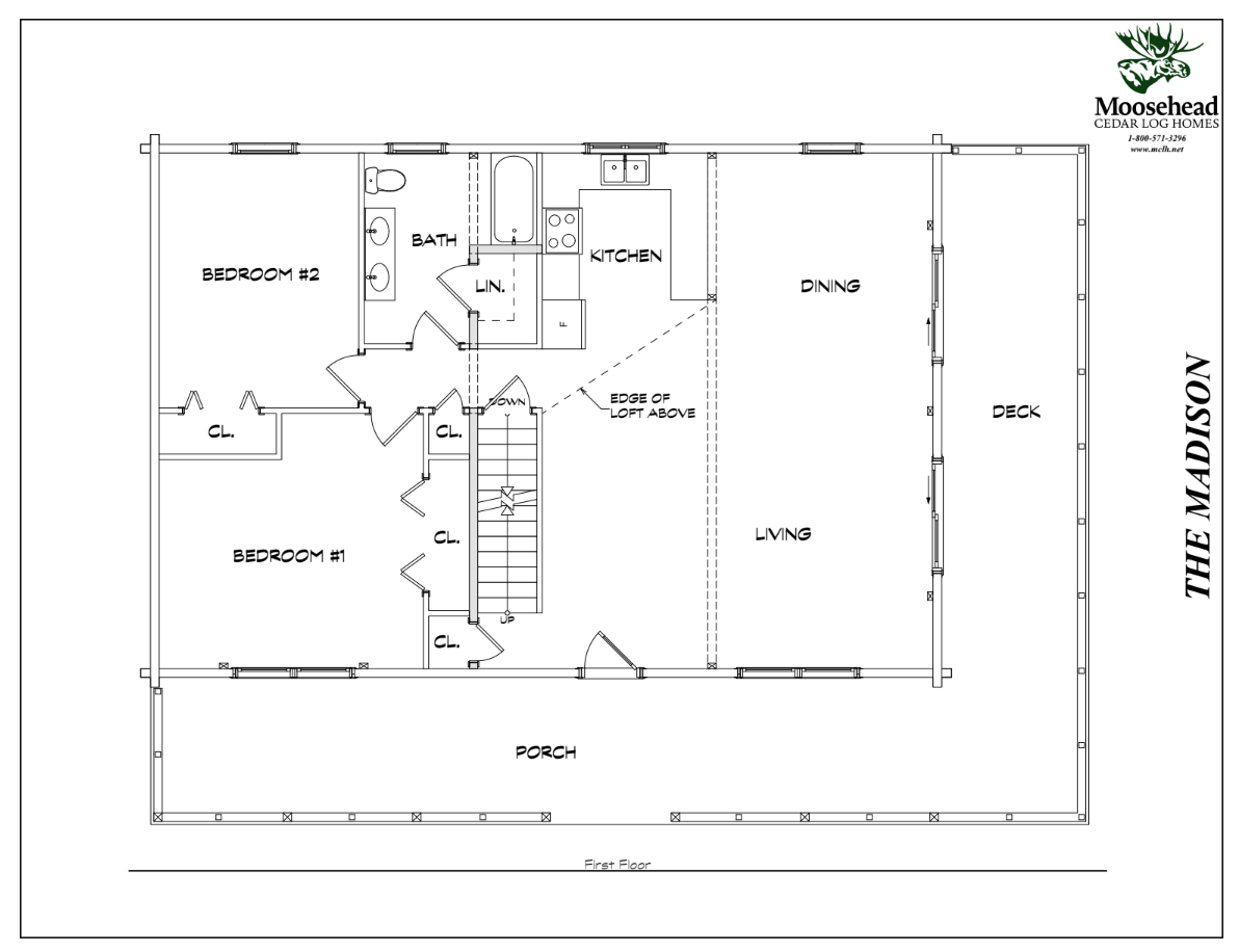 The Madison is easy to love. The large, covered porch spans the front and wraps around to a full side deck for ample outdoor living space, while inside, the vaulted great room offers floor to ceiling windows for unparalleled views. The conveniently designed kitchen is just off the great room, and leads to the two downstairs bedrooms and shared full bath. In the upstairs loft, the master suite features a large walk-in closet, full bathroom, and plenty of storage. Bring the outside in with the Madison.