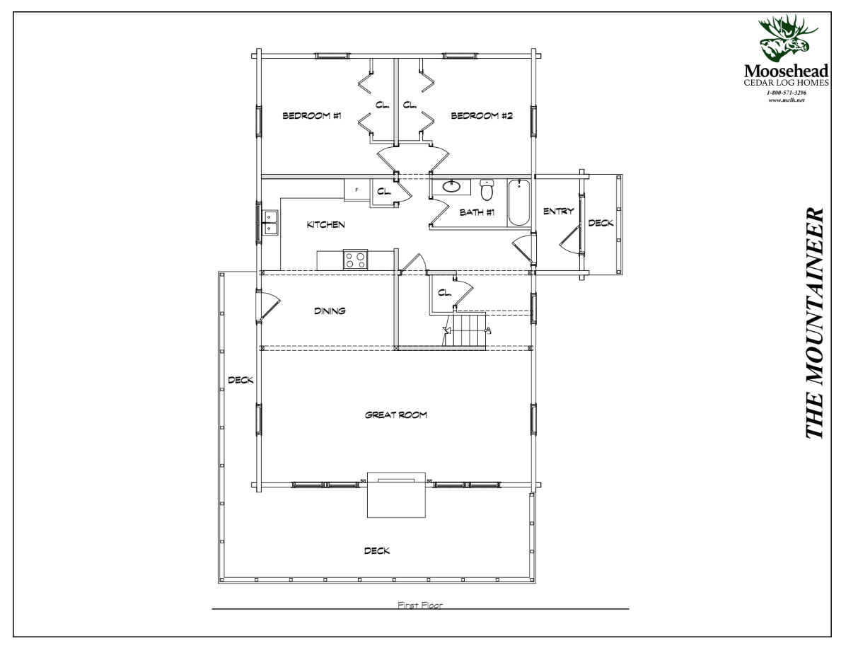 The design of the Mountaineer works just as well for entertaining as it does for daily living. From the side porch, the spacious main entrance has plenty of room for boots and bags, before opening up to the foyer. A large coat closet is smartly tucked into the corner of the L-shaped staircase, leaving plenty of room for a household command center. The kitchen is straight ahead, opening up to the dining room with direct access to the side deck- the perfect place for your grill. The vaulted great room lies just beyond, featuring floor to ceiling windows overlooking the large front deck. Completing the first floor are two bedrooms with plenty of closet space. The master suite is upstairs, with a full bathroom, spacious loft, and plenty of storage. The hardworking design of the Mountaineer will make your busy life feel a little more relaxed.