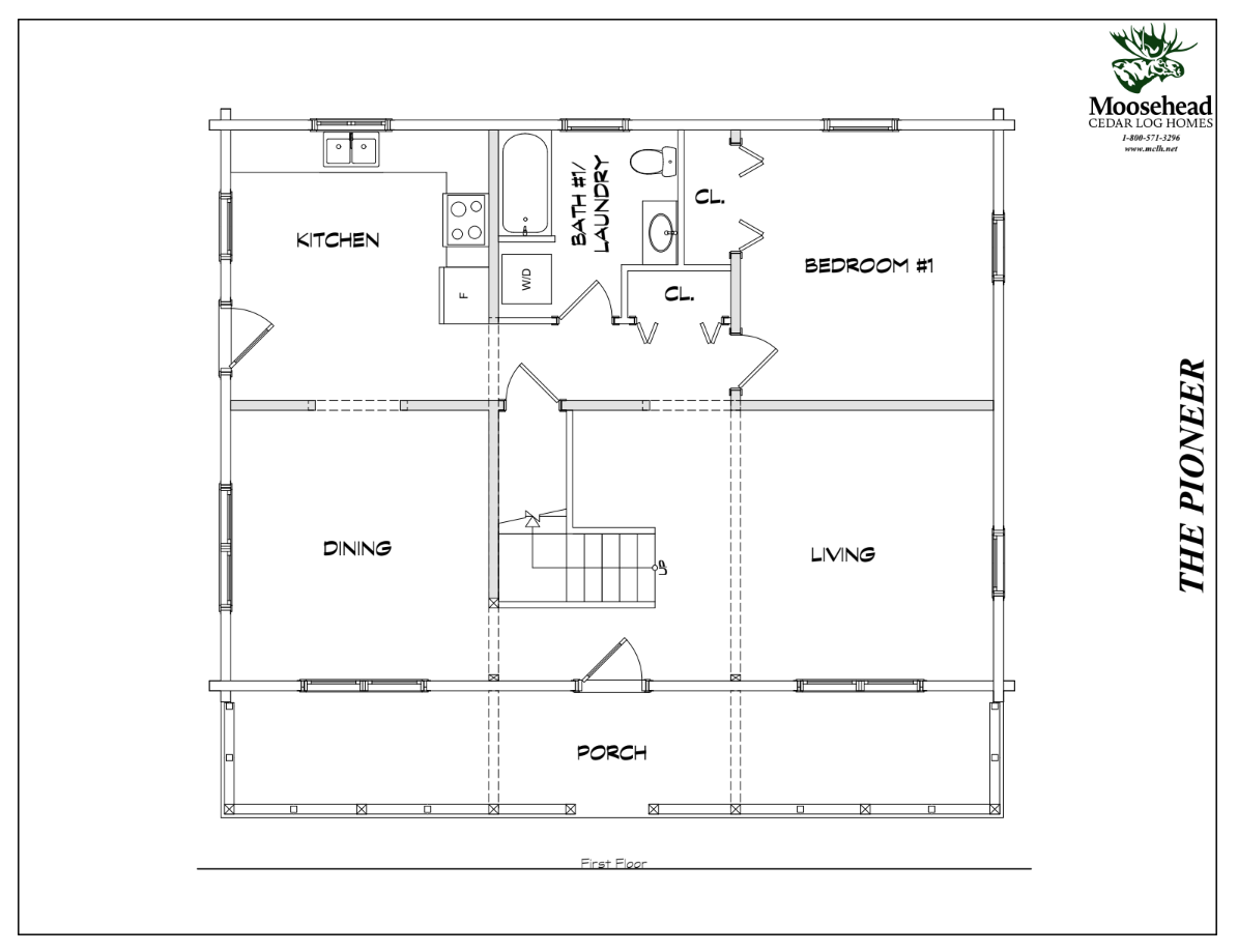With four bedrooms and a spacious dining room, the Pioneer is perfect for a big family, but can easily be customized for any lifestyle. From the covered porch entry, you’re greeted by an L-shaped staircase and vaulted living room. Below the loft is a first floor bedroom with sliding glass doors to the backyard, so it would also make a great playroom, office, or laundry room. Next is a full bathroom and large kitchen with outdoor access for a patio or even an attached garage. The dining room completes the first floor, and could easily become a family room or study. Upstairs are three more bedrooms and a second full bathroom, connected by a balcony overlooking the living room. Keep the Pioneer as it is or make it your own!