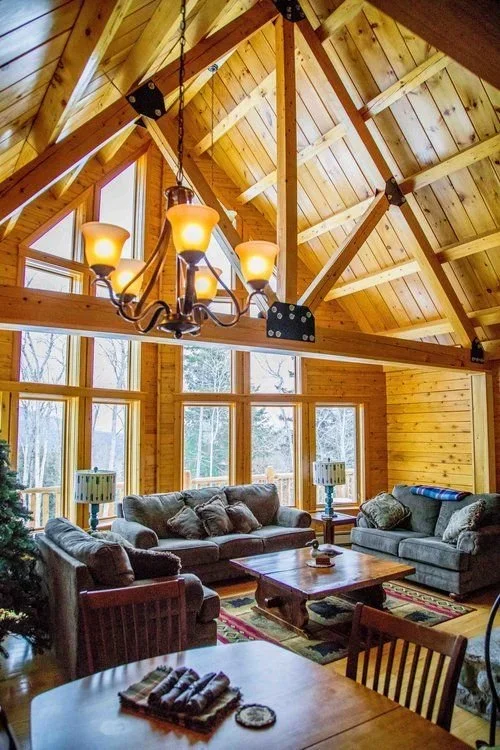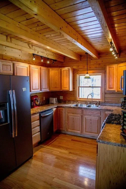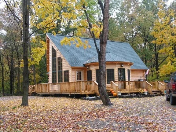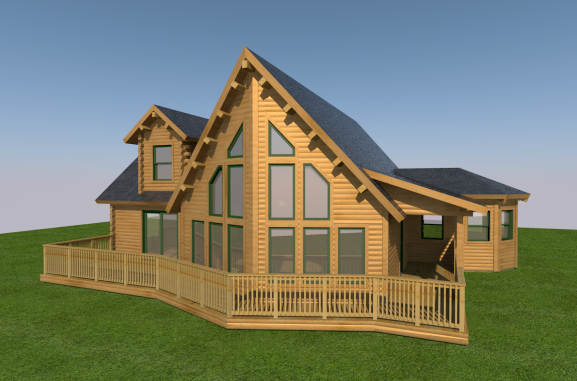 The Tahoe is ready to take in the views from every angle. From the covered front porch entry, the bowed great room features three levels of soaring floor to ceiling windows overlooking the wraparound front deck. The U-shaped kitchen leads to the octagonal dining room with six walls of windows and direct access to the backyard. Off the kitchen is a laundry closet and full bathroom, followed by two main floor guest bedrooms. The second floor loft looks out over the great room, and connects to the master suite, complete with a full bathroom and large walk-in closet. Let the outside in with the Tahoe!